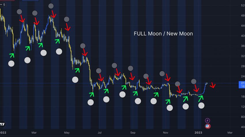 Algunos miembros de la comunidad cripto creen que el comportamiento del mercado de activos digitales está correlacionado con las fases lunares.
