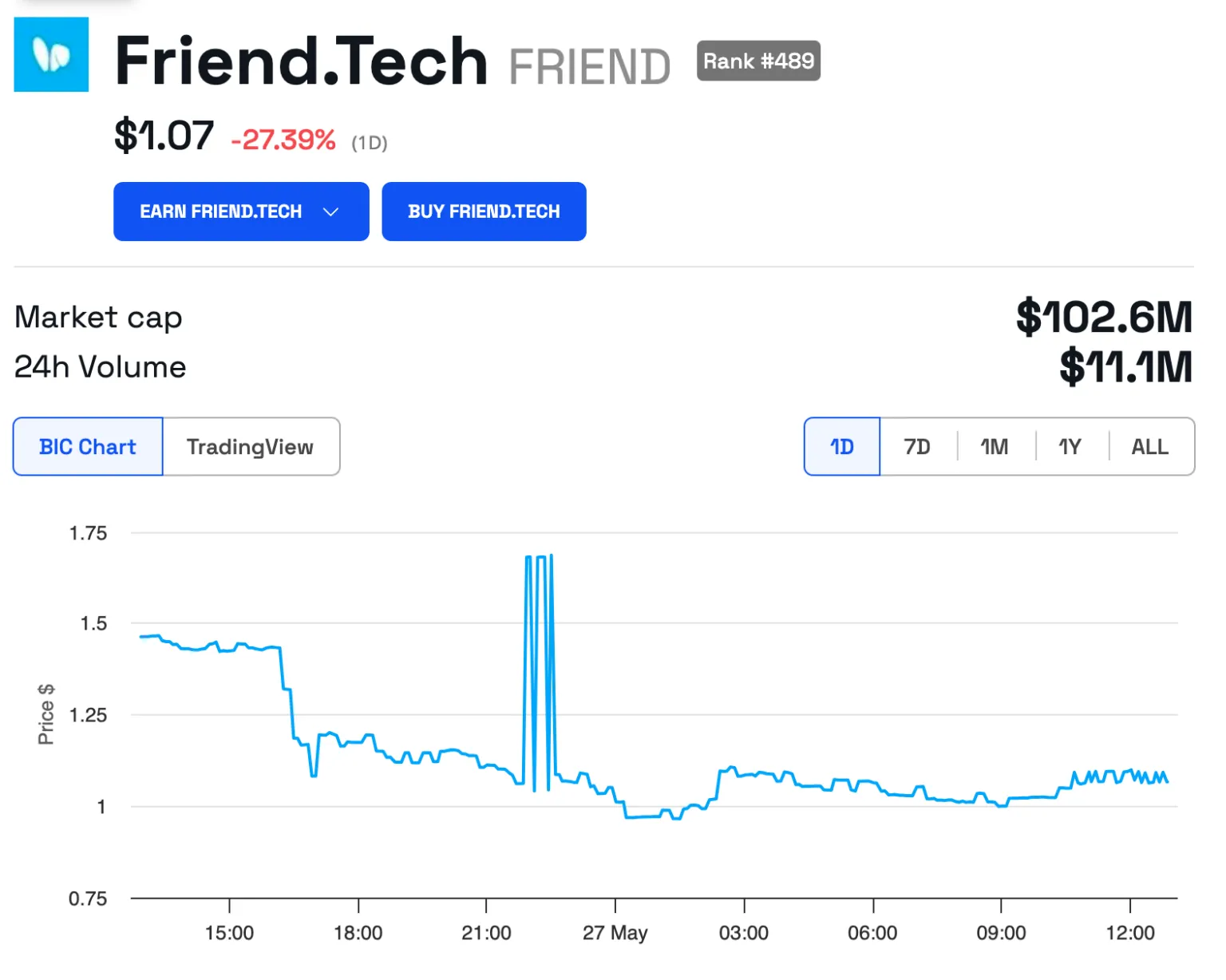 El token de Friend.tech, FRIEND, cayó más de un 27% tras la publicación de Racer. Su mensaje en X ofrecía 200,000 dólares por un diseño de sistema para migrar Friend.tech fuera de Base sin problemas significativos para los usuarios.
