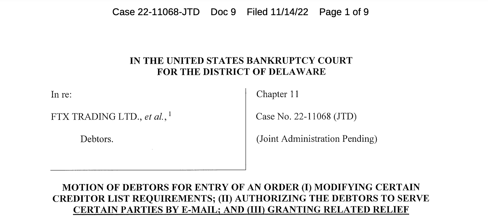 Los procedimientos de quiebra contra FTX han tenido un comienzo retrasado, luego de la presentación de sus mociones del primer día ayer.