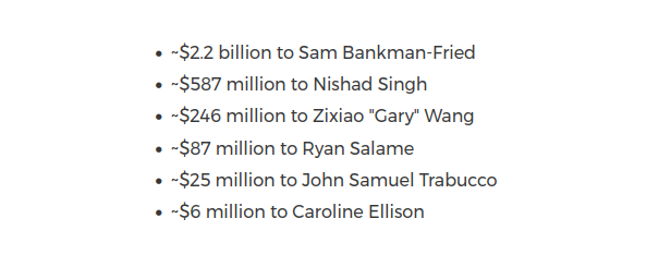 El exchange de criptomonedas en bancarrota FTX reveló que Sam Bankman-Fried (SBF) y otros ejecutivos clave habían recibido 3,2 mil millones de dólares en pagos y préstamos.