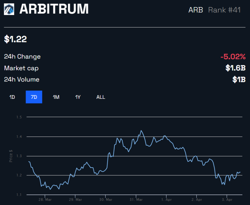 Tras la reacción violenta de la comunidad, el token ARB ha caído un 5% en las últimas 24 horas a 1.22 dólares.