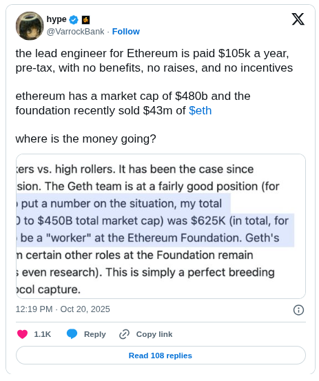 Mientras tanto, las revelaciones provocaron intensas críticas a la Fundación Ethereum por parte de la comunidad. Los comentarios de Szilágyi sobre las brechas salariales rápidamente se convirtieron en un punto de conflicto, con muchos cuestionando cómo la Fundación ha estado utilizando sus vastos recursos.