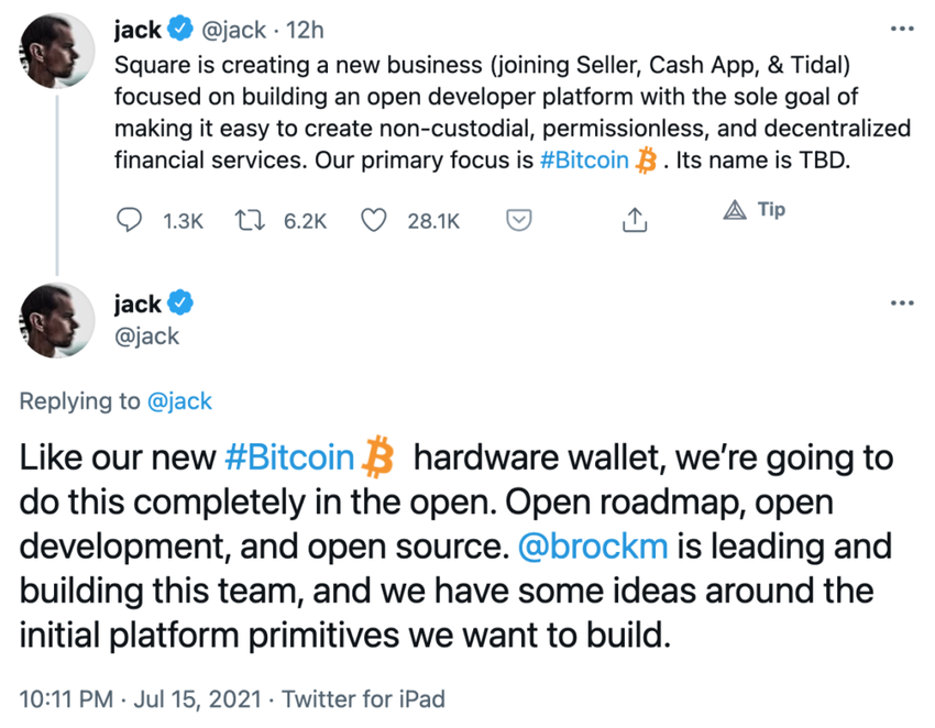 BeInCrypto informó recientemente que Jack Dorsey, CEO de Twitter y de Square, anunció su pretensión de crear una plataforma de finanzas descentralizadas (DeFi) llamada temporalmente TBD.