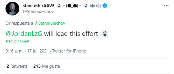 Ante el mensaje Kulechov, el cofundador de Aave, Jordan Lazaro Gustave, tuiteó un mensaje enigmático que indicaría que el proyecto marcha en serio:
