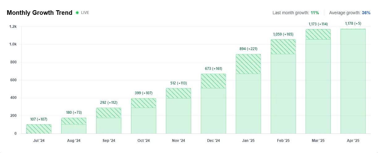 Por otro lado, los agentes de IA no tokenizados siguen prosperando, atrayendo más atención debido a su enfoque en aplicaciones del mundo real en lugar del trading especulativo. En concreto, los datos del Directorio de Agentes de IA indican un aumento mensual promedio del 36 % en el número de agentes de IA.