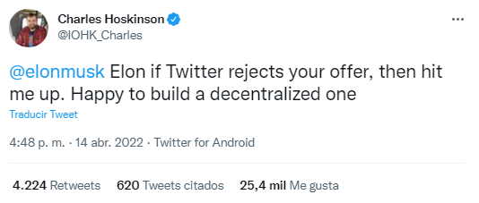 Sponsored“Elon, si Twitter rechaza tu oferta, contáctame. [Estaría] Feliz de construir uno descentralizado”