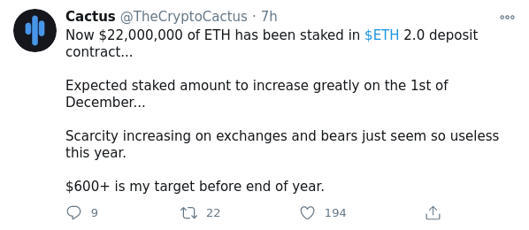 Con 22 millones de dólares de ETH en staking, los analistas han sugerido que es probable que este número se acelere en diciembre con el lanzamiento de la fase 0.