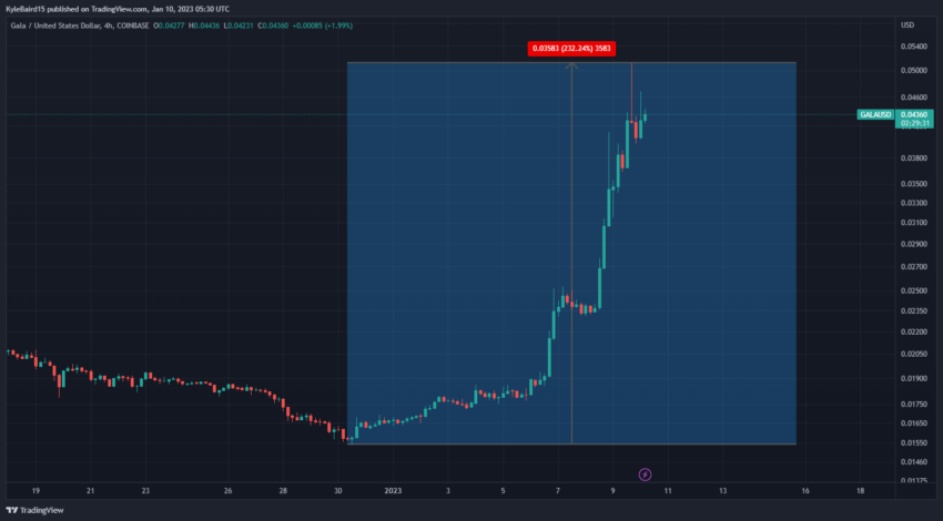 El token nativo de Gala Games se han más que duplicado en precio durante la última semana. Además, GALA ha ganado un 18.6% en el día y subió brevemente un 232% desde su mínimo del 30 de diciembre de 0.0154 dólares.