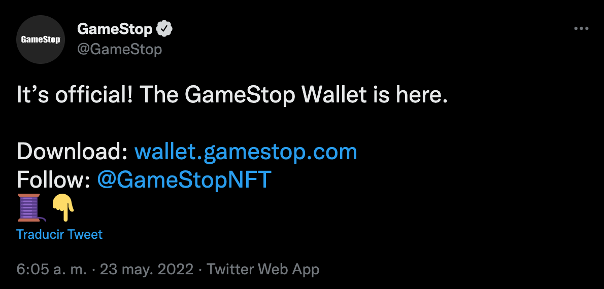 SponsoredA través de su cuenta oficial de Twitter, GameStop informó sobre el nuevo monedero, y compartió información relacionada con el tema. Incluso, la distribuidora de videojuegos indicó que los empleados de GameStop NUNCA le pedirán la frase secreta de recuperación a los usuarios, ni les pedirán que envíen fondos a la empresa.