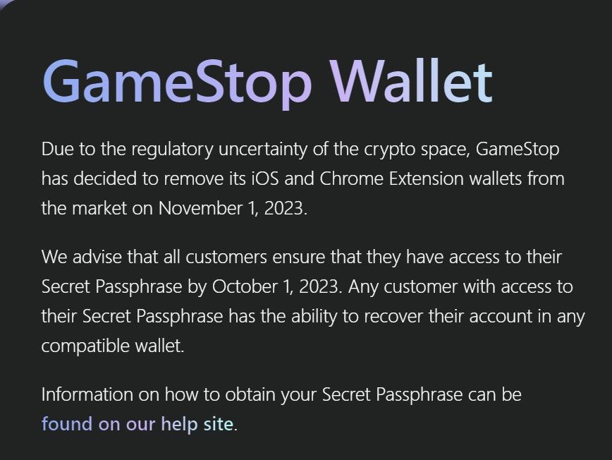 Este monedero estaba enfocado en aprovechar el hype cripto y NFT que se estaba dando en el momento. Permitiéndole a sus usuarios guardar tanto criptomonedas como cualquier arte que estuviese en NFT. Pero tras un año de su lanzamiento, GameStop Wallet cerrará sus puertas el primero de noviembre.