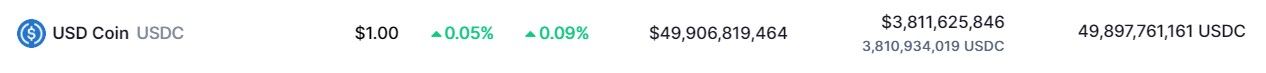 Si esto lo comparamos con USDC, la diferencia es abrumadora. La capitalización de mercado de USDC llega a los 49 mil millones de dólares.