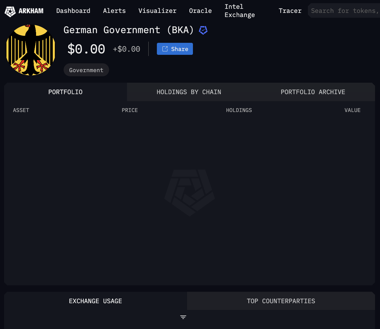 Datos de Arkham Intelligence confirmaron que Alemania tiene 0 BTC. Las transacciones se hicieron cada 6 horas por montos de 14 millones hasta 180 millones de dólares. Las últimas transacciones fueron cuatro: 3,09 mil BTC, 3,094 mil BTC, 752,16 BTC y 3,094 mil BTC. La mayoría de envíos de realizaron a monederos.