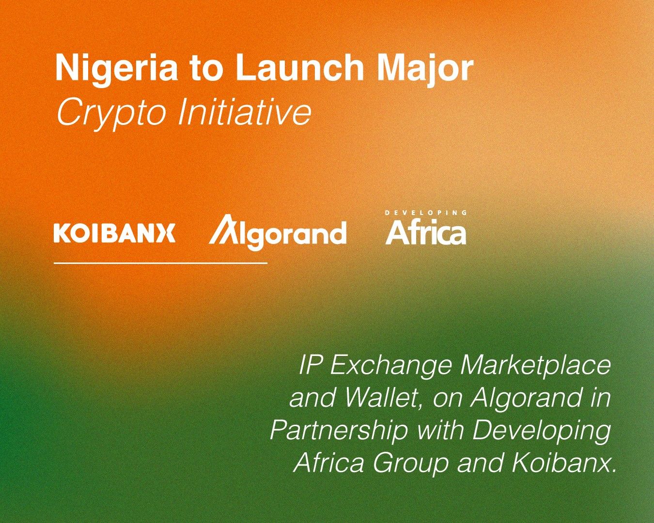 El gobierno de Nigeria firmó un acuerdo exclusivo de DPI (Derecho de Propiedad Intelectual) de 3 años con Developing Africa Group para lanzar una wallet nacional que permitirá la comercialización internacional de todos los formularios de Propiedad Intelectual que se creen y registren dentro del país, tanto a nivel local como internacional.