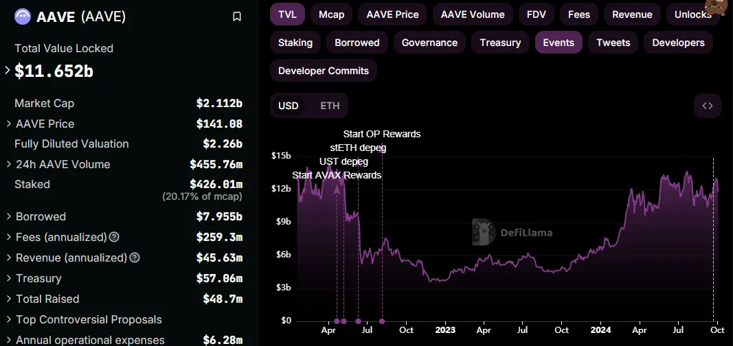 La plataforma ha crecido en popularidad. Es el protocolo de préstamos en cripto más grande basado en métricas de valor total bloqueado (TVL) de 11.652 mil millones de dólares, según datos de DeFiLlama.