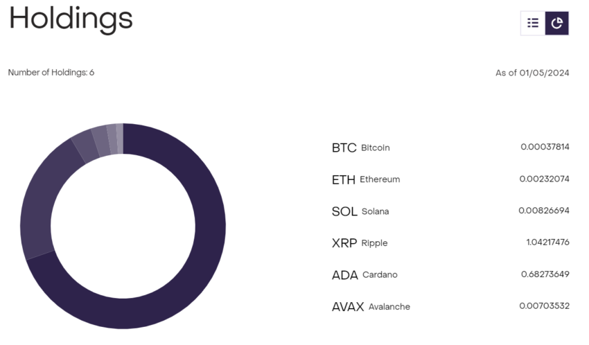 El Digital Large Cap Fund abarca ahora 69,15% de BTC, 21,90% de ETH, 3,68% de SOL, 1,62% de ADA, 2,54% de XRP y 1,14% de AVAX.