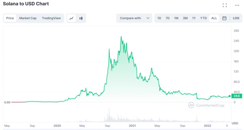 Si bien SOL ha subido alrededor de 150% en lo que va del año, su precio sigue estando 75% por debajo de su punto de precio de 100 dólares hace un año. En general, SOL ha bajado más del 90% desde su máximo histórico en junio de 2021.