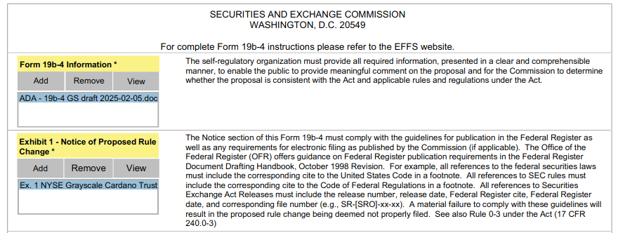 Grayscale, uno de los gestores de activos más importantes en el espacio de las criptomonedas, continúa su expansión en el mercado de fondos cotizados en bolsa (ETF). La firma ha presentado formalmente ante la Bolsa de Valores de Nueva York (NYSE) su solicitud para lanzar un ETF basado en Cardano (ADA). Este hito marca un paso significativo hacia la diversificación de su portafolio cripto.