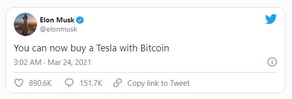 Cuando Tesla realizó, también prometió que comprar sus productos con Bitcoin estaba en sus proyectos. La compañía de tecnología que fabrica vehículos cumplió con esa promesa el 24 de marzo.