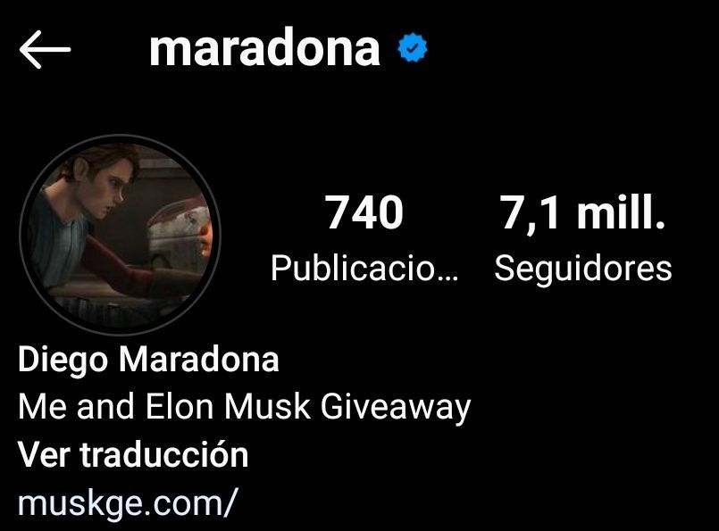 De un momento a otro, la clásica foto de perfil de la cuenta de Maradona, “el Diez” fue cambiada por una imagen de una serie animada de Star Wars.