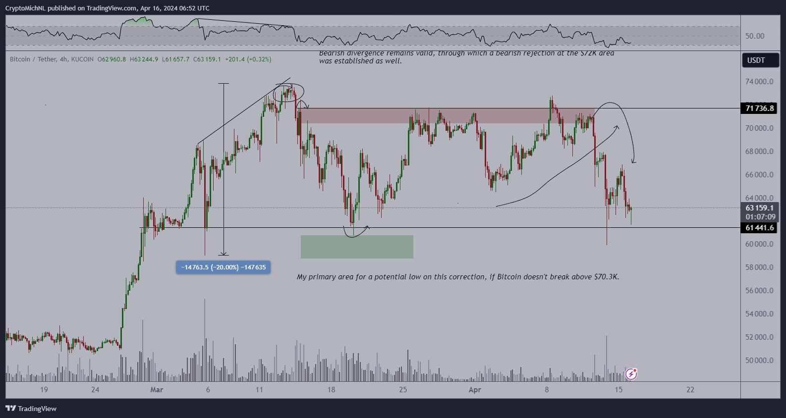 Sin embargo, el trader no descarta una “manipulación” como en el halving del 2016. En este escenario, Bitcoin podría caer hasta un rango comprendido entre los 50,000 dólares y 53,000 dólares.