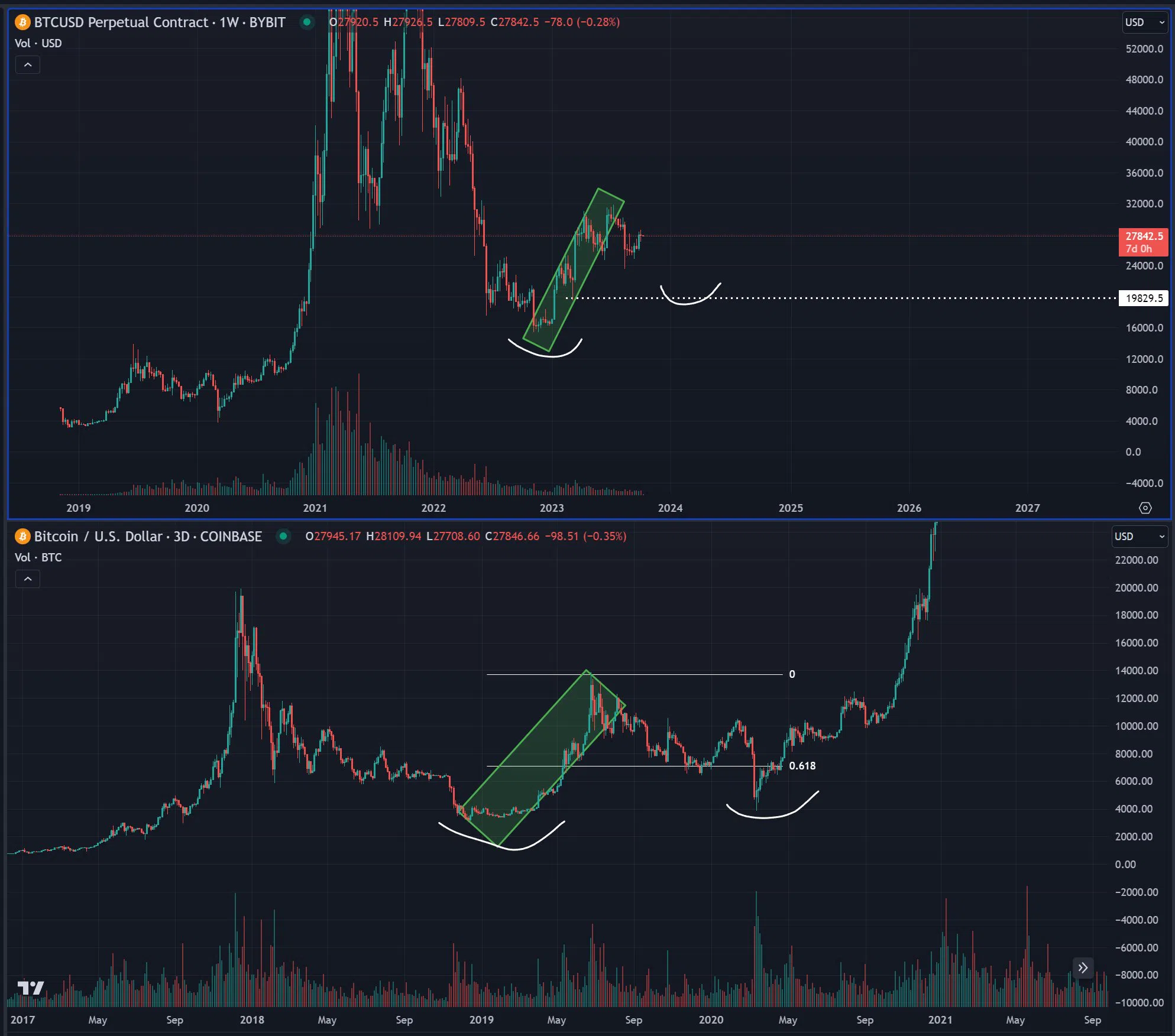Sponsored“Estamos en la parte del ciclo 2019-2020 en la que todavía podemos bajar fácilmente a 19,000-20,000 dólares y alcanzar un mínimo más alto y continuar subiendo durante 2024.”