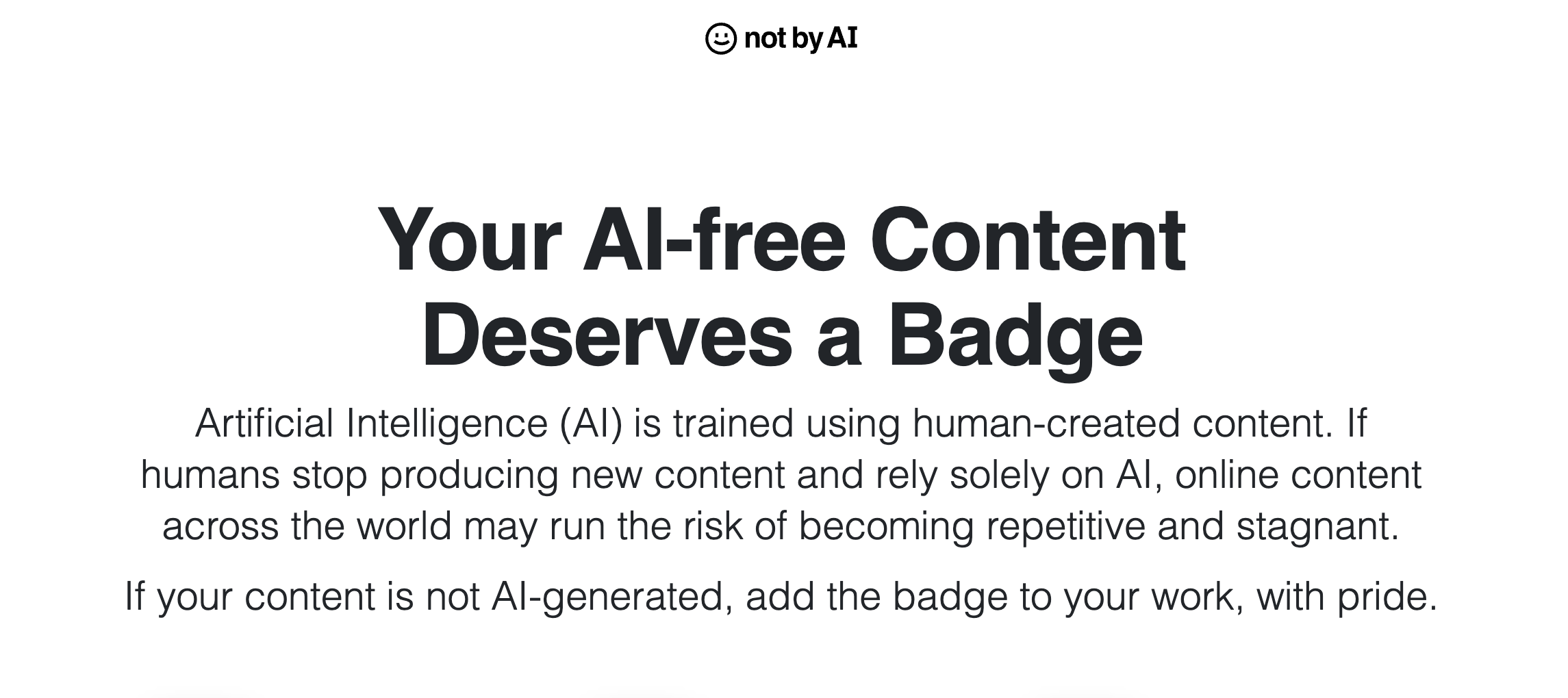 La iniciativa llamada Not By AI, propone incluir un distintivo de “Hecho por Humanos” en producciones digitales para indicar que han sido creadas por una persona y no por IA. La idea es que este distintivo permita a los usuarios distinguir fácilmente entre los contenidos generados por IA y los creados por humanos, lo que a su vez fomentaría la valoración y el reconocimiento del trabajo humano.