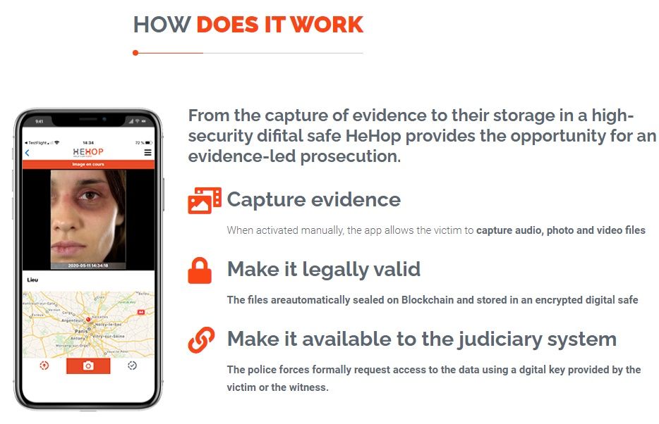 HeHop, una organización sin fines de lucro con sede en París, Francia, se alzó con el mayor premio en el BlockchAngel Challenge 2020, al presentar una aplicación dirigida a las víctimas de violencia doméstica que les permite generar evidencia segura del abuso sufrido a través de la tecnología blockchain.