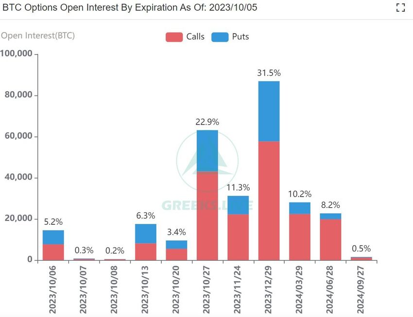 El 6 de octubre, expirarán alrededor de 14,000 contratos de opciones de Bitcoin con un valor nominal aproximado de 400 millones de dólares. El evento de vencimiento de opciones de hoy no es tan grande como el de la semana pasada, que fue tanto a final de mes como de trimestre.
