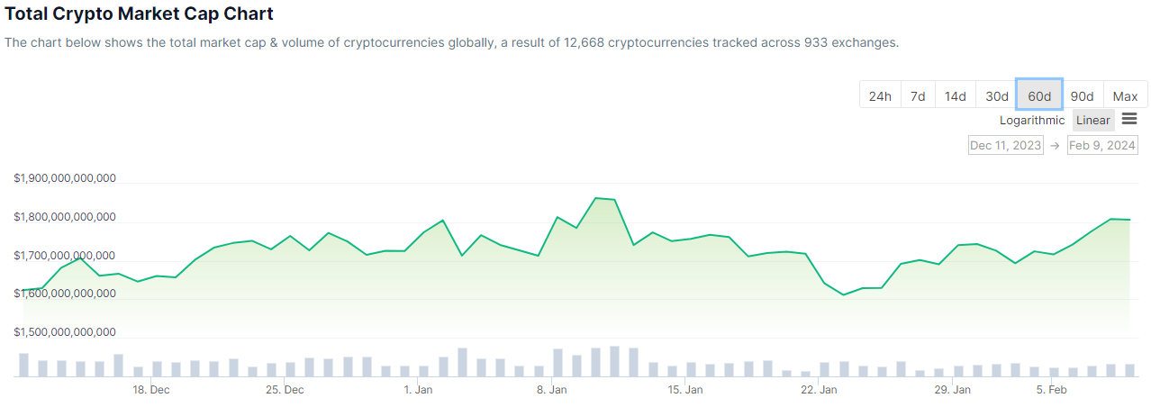 Los mercados de criptomonedas están terminando la semana en verde con una ganancia del 2.5% en el día, llevando la capitalización total a 1,83 billones de dólares.