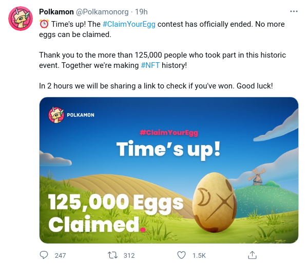 “Solo en tarifas del gas, estimamos que los fans de Polkamon han gastado más de un millón de dólares en reclamar huevos para tener la oportunidad de participar en nuestro próximo IDO en Polkastarter”.