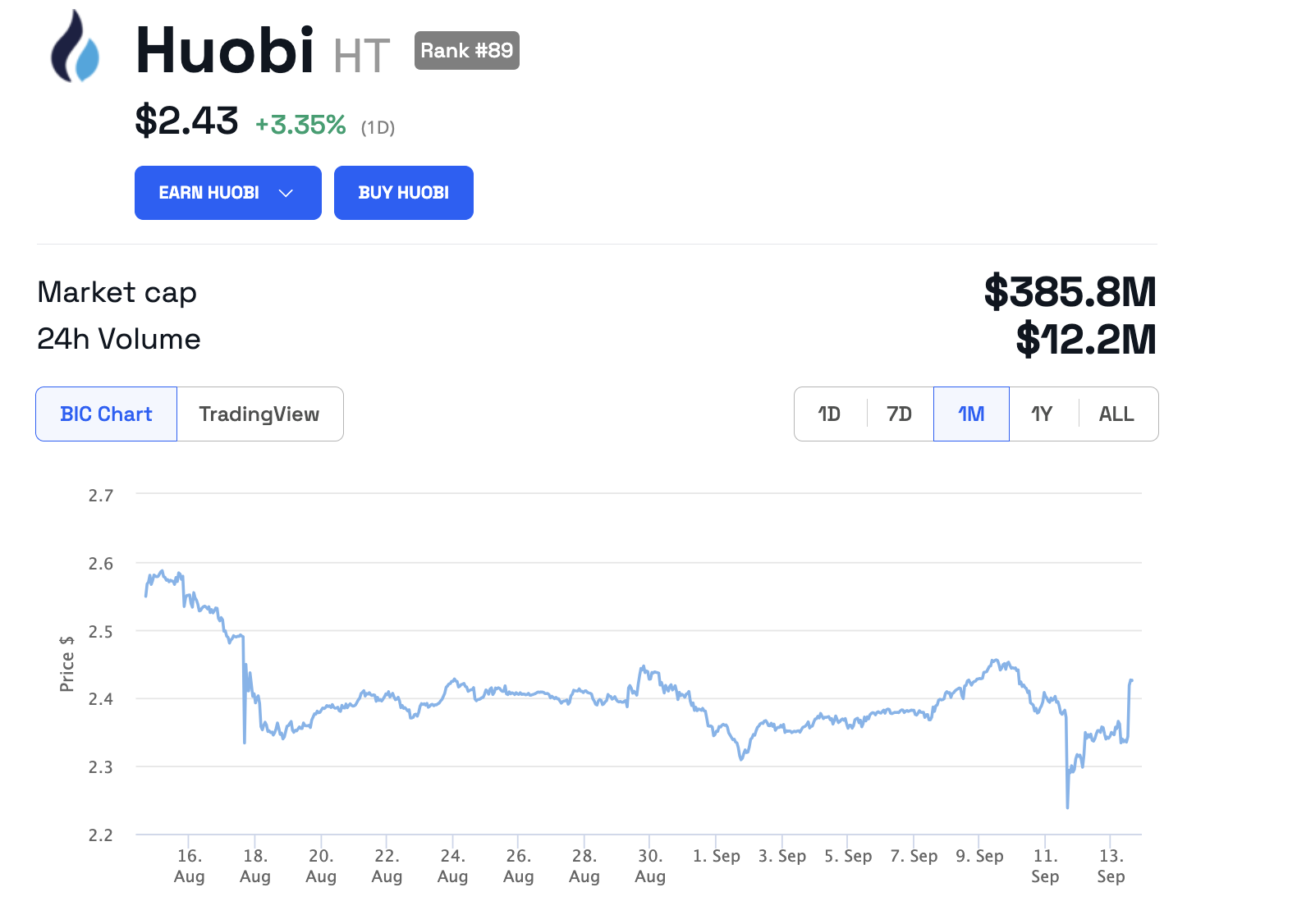 Huobi ha atravesado dificultades últimamente debido a la disminución de las reservas y del volumen de operaciones, y un aumento de las salidas de capital ha desatado rumores de insolvencia. En el momento de escribir este artículo, el token HT se cotiza a 2,43 dólares, un aumento del 3,35% en las últimas 24 horas.