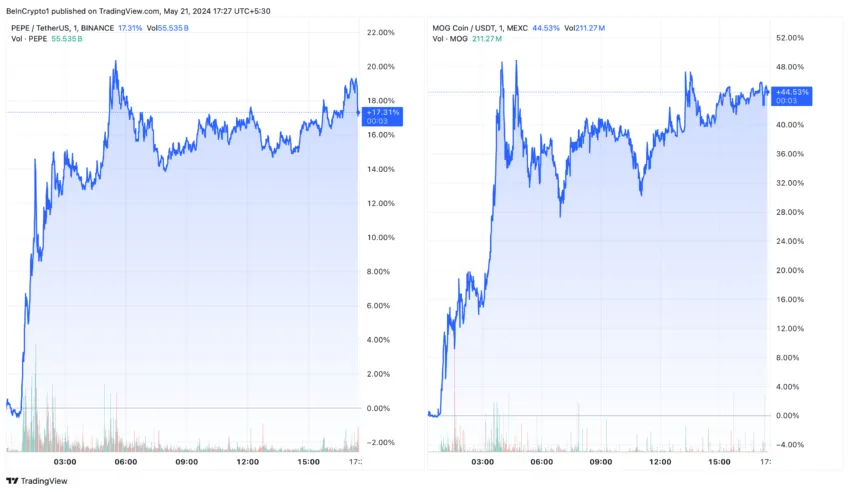Pepe (PEPE) y Mogcoin (MOG) se disparan