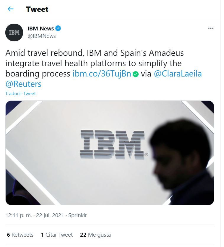 Al integrar el protocolo “Digital Health Pass” de IBM al sistema Traveler ID, Amadeus prevé brindar más certidumbre al sector turístico y a los pasajeros, ya que estos podrán verificar en tiempo real sus datos médicos.