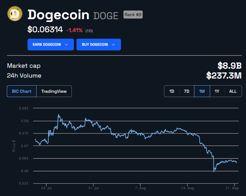 Esta pérdida llega en un momento difícil para la criptomoneda que lleva el nombre del ícono del meme. El mercado de Dogecoin ha estado navegando por aguas turbulentas.