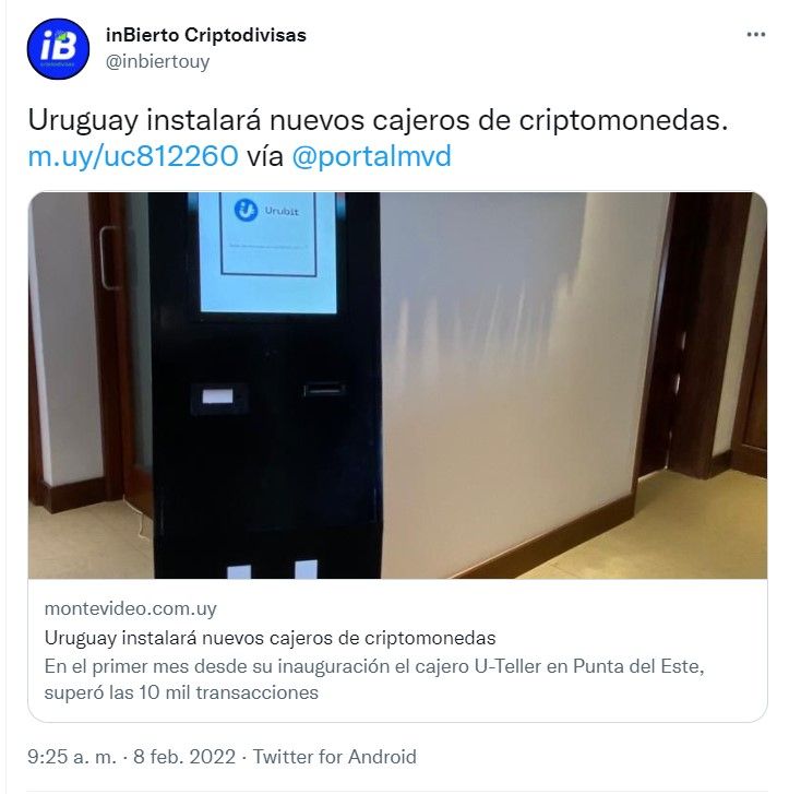 SponsoredY es que la empresa InBierto ha anunciado que instalarán tres cajeros automáticos en distintas ciudades en Uruguay tras el éxito que tuvo el cajero instalado en la ciudad de Punta del Este el pasado 7 de enero. Éste registró más de 10 mil transacciones en todo el mes, atrayendo el interés de la empresa en seguir invirtiendo en el país sudamericano.