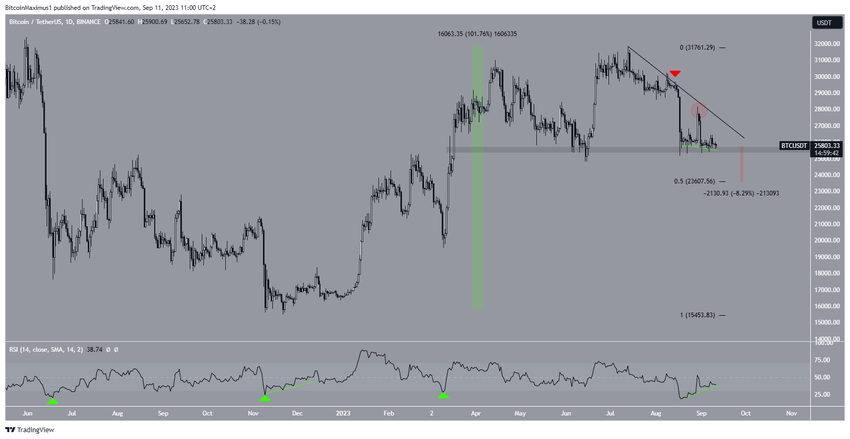 A pesar de esta predicción alcista del precio de BTC, una ruptura del área de 25,700 dólares indicará que se esperan más caídas.