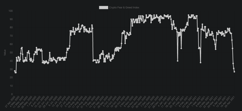 El índice de miedo y codicia de Bitcoin (BTC) se encuentra en su nivel más bajo en casi un año, lo que indica “miedo”.
