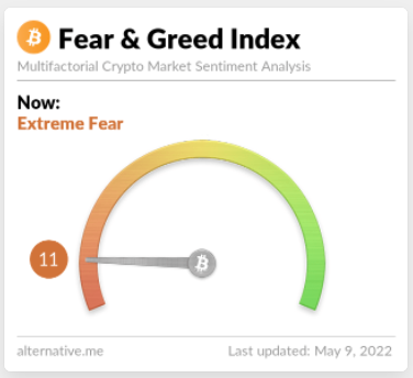 En medio del desplome del mercado cripto, el Índice de Miedo y Codicia se ha actualizado a “miedo extremo” mientras se aproxima a los mínimos anuales. El temor en el mercado se produce en un escenario en que Bitcoin (BTC) cotiza en 32,822 dólares.