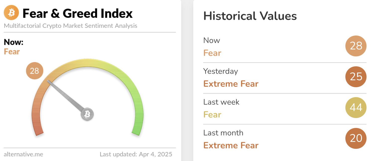 El 3 de abril, se desplomó a un mínimo de 25, indicando una ansiedad elevada entre los inversores, aunque Bitcoin se negociaba alrededor de 80,000 dólares. De hecho, el último valor de 28 también indicó un miedo sustancial entre los participantes del mercado.
