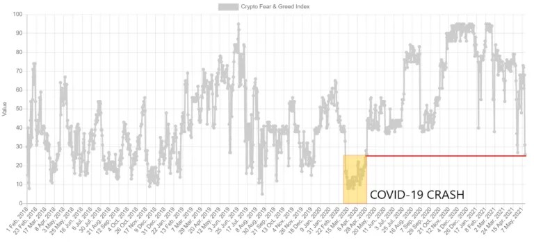 Para ser precisos, el 29 de abril fue la última vez que se registró el valor de 26 en el Índice de Miedo y Codicia, y BTC se cotizaba a 7.600 dólares.