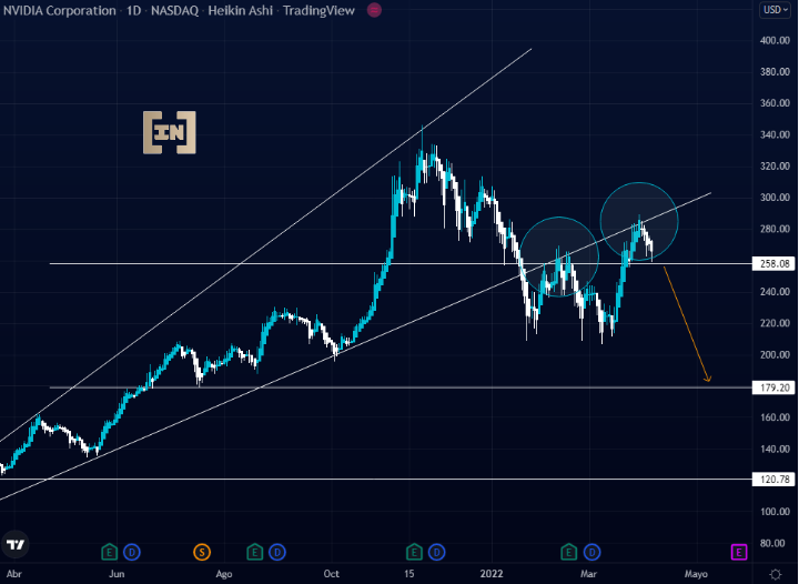 El parque tecnológico Nasdaq 100 ha venido recuperándose las ultimas tres semanas, Nvidia una de las compañías mas importantes del sector no es la excepción y ha recuperado gran parte de su caída en el pecio llegando a cotizar los 258.08 dólares.