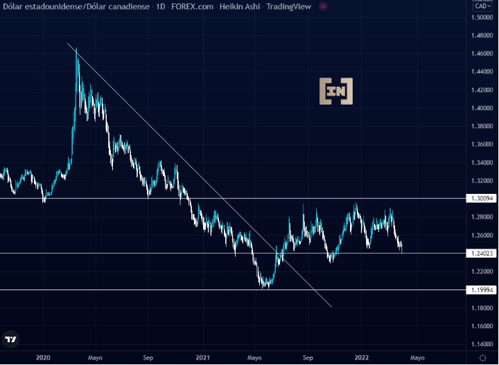 Por otro lado, de ser perforada el área de soporte de los 1.24 dólares canadienses la cotización del dólar estadounidense se proyectaría en los 1.199 dólares canadienses.