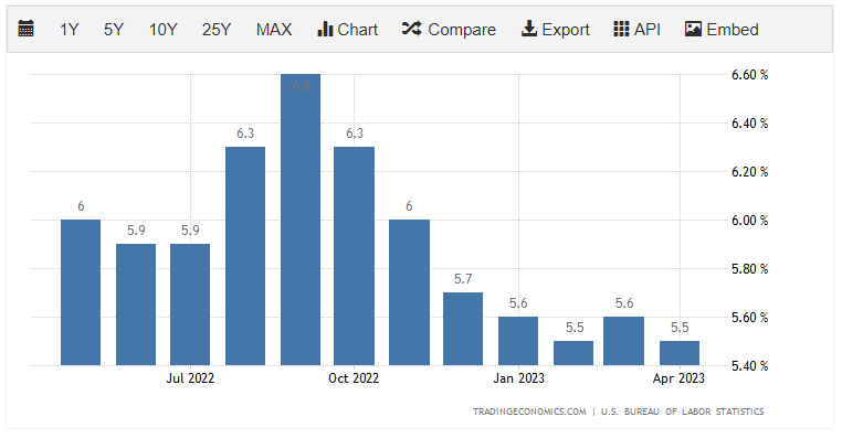 Hoy Estados Unidos ha desvelado un dato muy importante para el país como para los mercados internacionales. El IPC de EE.UU. de abril ha bajado sorprendentemente hasta 4,9%. La bajada de una décima menos respecto al mes de marzo confirma la ralentización en la subida de precios. El consenso del mercado preveía que la tasa de inflación anual se mantuviera en 5.0%. ¿Cómo ha respondido el mercado del las criptomonedas?