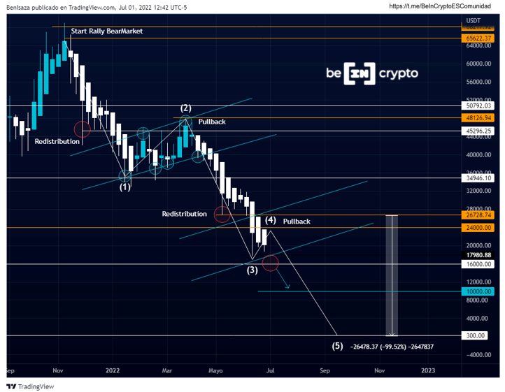 Mientras la cotización de Bitcoin se mantenga por debajo de los 20,000 dólares, la proyección continúa siendo bajista con objetivos alcanzar los 17,600 dólares y 16,000 dólares. Oportunidad de entrada se encuentra tras la ruptura del nivel 18,400 dólares.