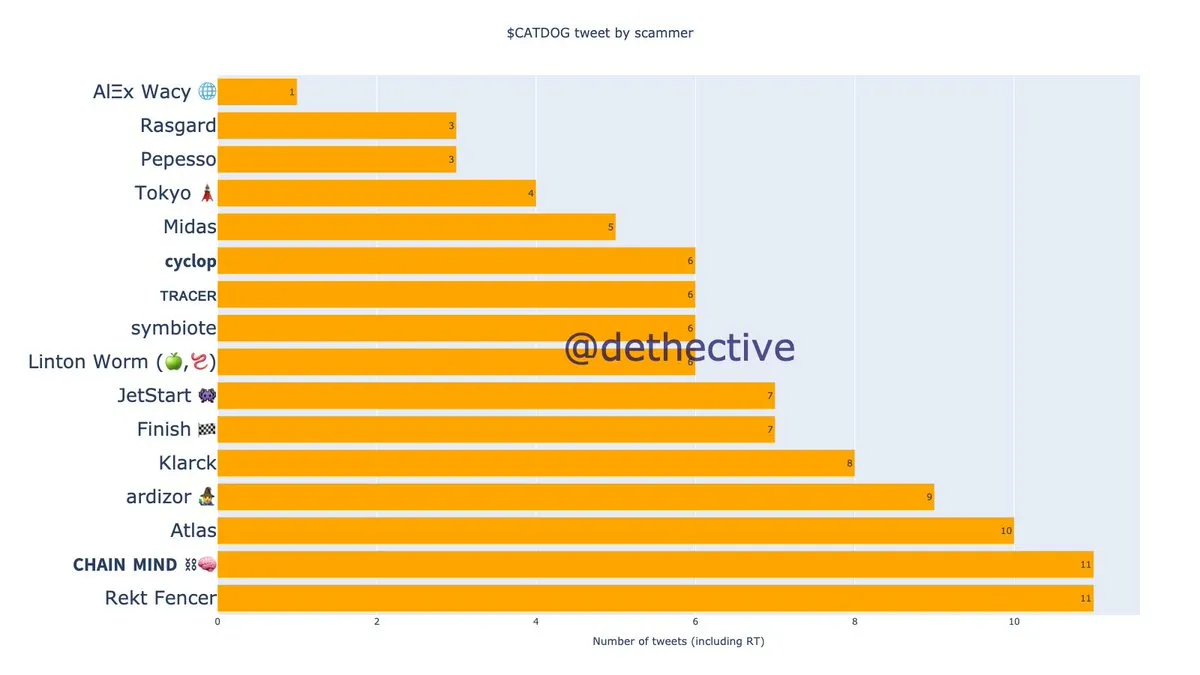 Dethective, otro usuario de X (Twitter), describió cómo una red de influencers tuiteó sobre CATDOG a más de 2.6 millones de seguidores: