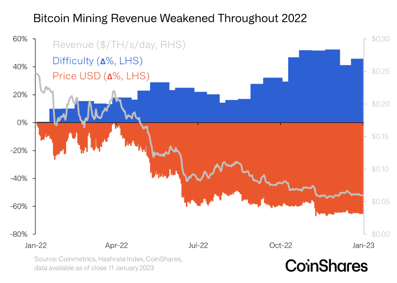 SponsoredMatthew Kimmel, de CoinShares, sugirió que si bien 2022 fue brutal para la mayoría de las empresas mineras, 2023 continuará eliminando equipos insolventes y consolidando las operaciones mineras.