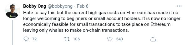 También dijo que el estado actual de las cosas disuadirá a los nuevos jugadores de ingresar al ecosistema DeFi basado en Ethereum.