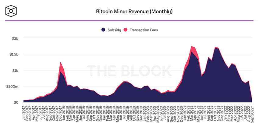 Los hitos alcanzados por BTC en 2021 significaron que los mineros compartieron enormes ingresos de 1,41 mil millones de dólares en agosto del año pasado. El valor de este año representa una caída interanual del 53%.