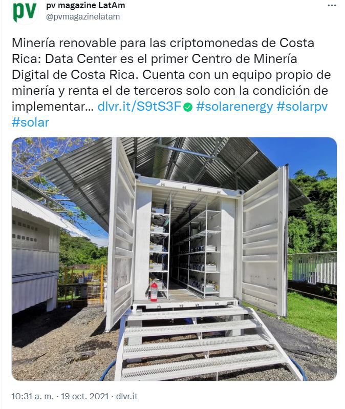 El Data Center CR de Costa Rica es un espacio de oficinas en renta que opera como “coworking” y tiene hasta mil unidades para realizar minería de criptomonedas con energía sustentable, vigilancia, etc. Empresarios apuntan que el país tiene potencial para ser el mejor de la región en minería.