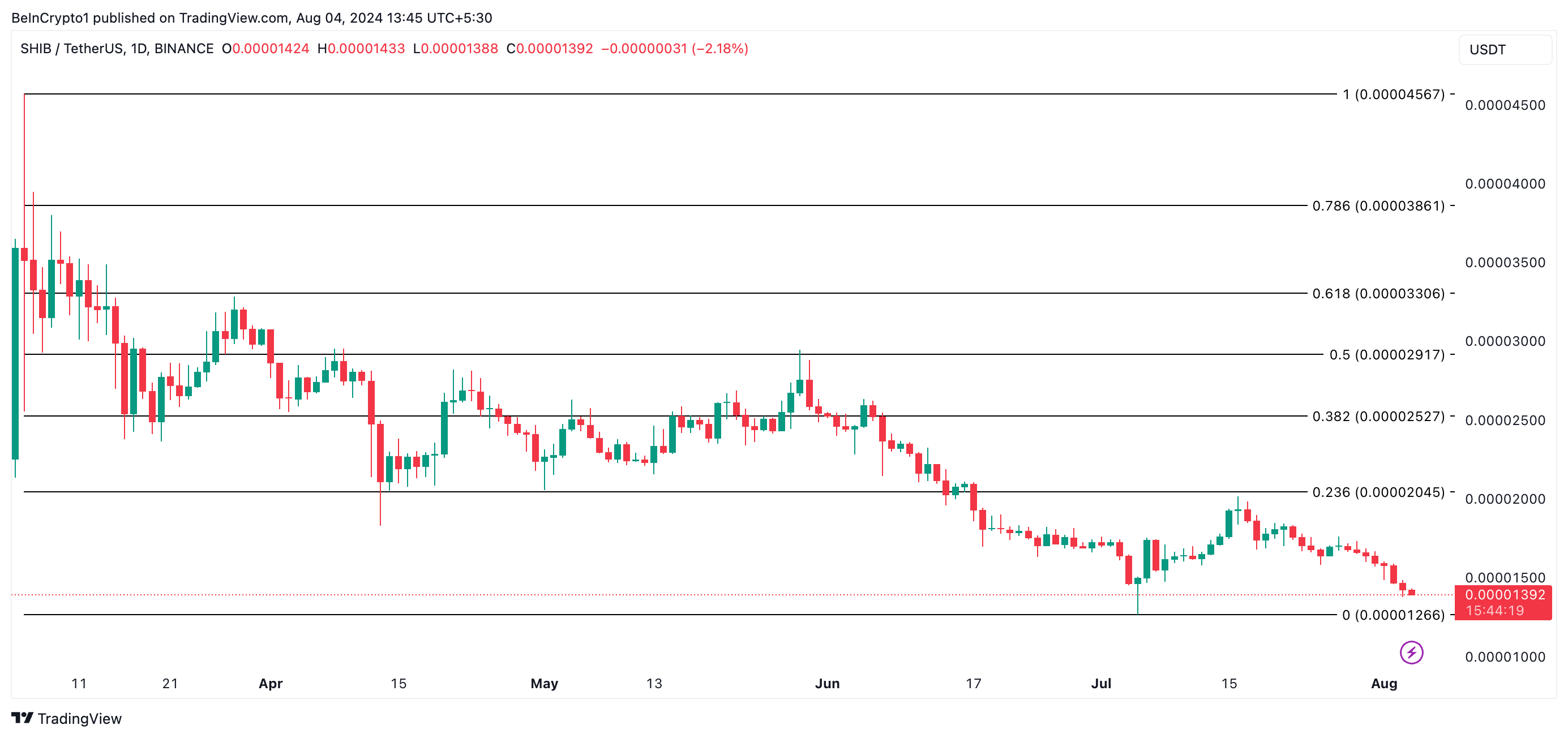 Si esta tendencia continúa, el precio de SHIB caerá a 0.000012 dólares. La última vez que se negoció a este nivel de precio fue el 5 de julio.